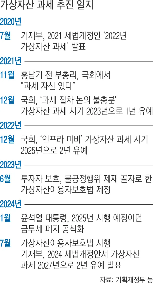 2023년부터 2025년까지의 가상자산 과세 관련 일정은 다음과 같습니다.